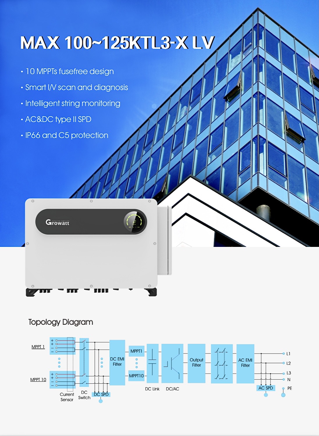 INVERTER HÒA LƯỚI GROWATT 110KW (MAX 110KTL3-X LV)
